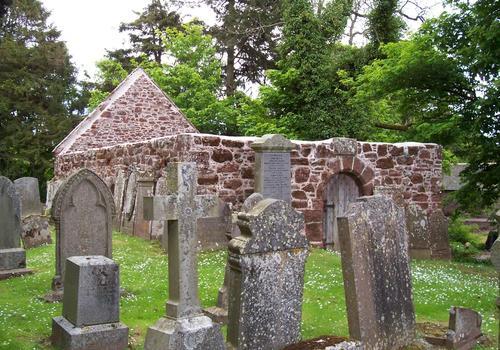 Above: remains of St Palladius's Chapel, in the parish kirkyard. Partly demolished in 1828, it forms the burial aisle of the Irvines of Monboddo and Burnetts of Monboddo. See also this Leaflet about the Chapel.