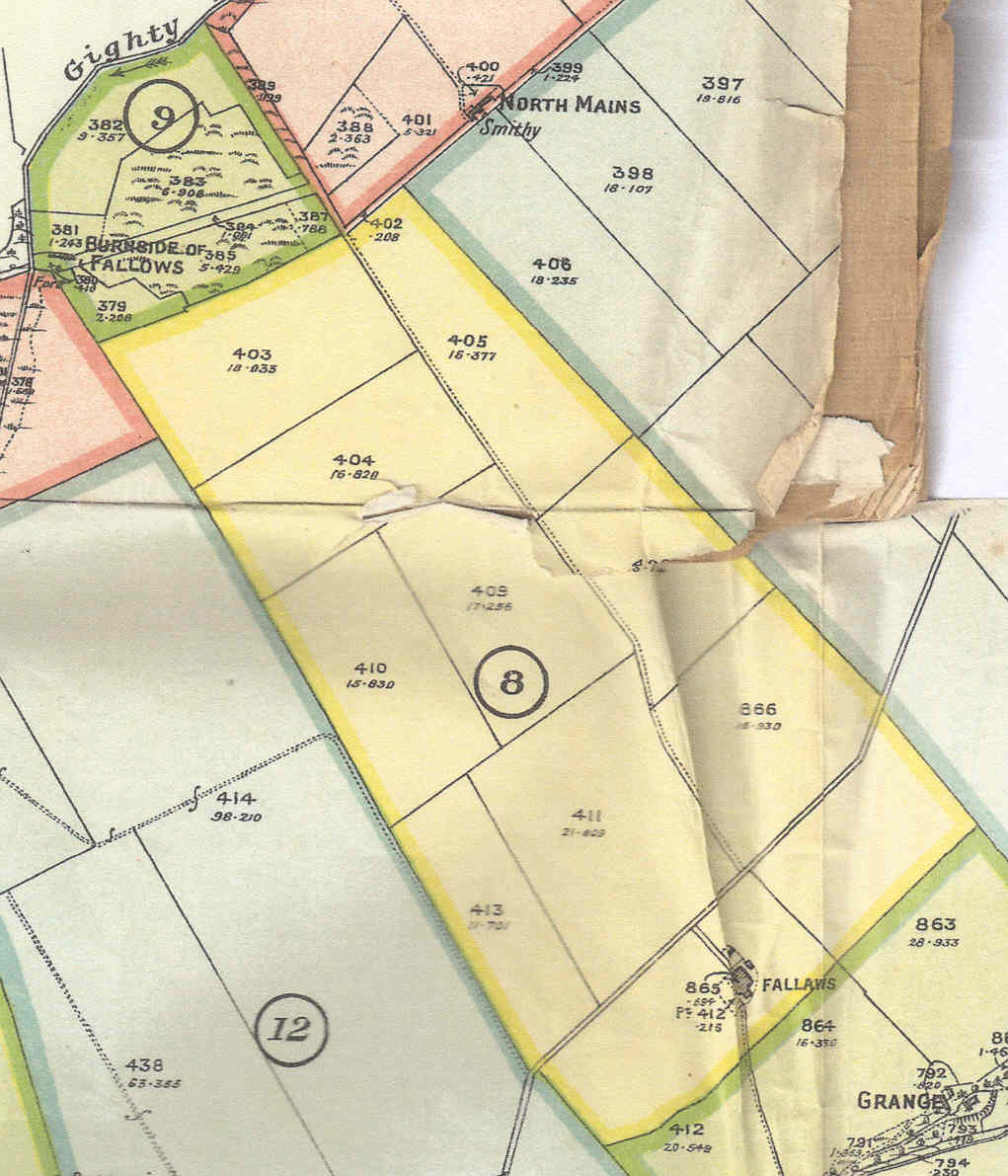 8 | Fallaws [ Map ] | Farmhouse, steading, cottage | 178.959 | 178.049 | -- | 403-5, 408-13, 863 (part), 864 (part), 865-6 | Peter Smith | 220 | M 1921 |