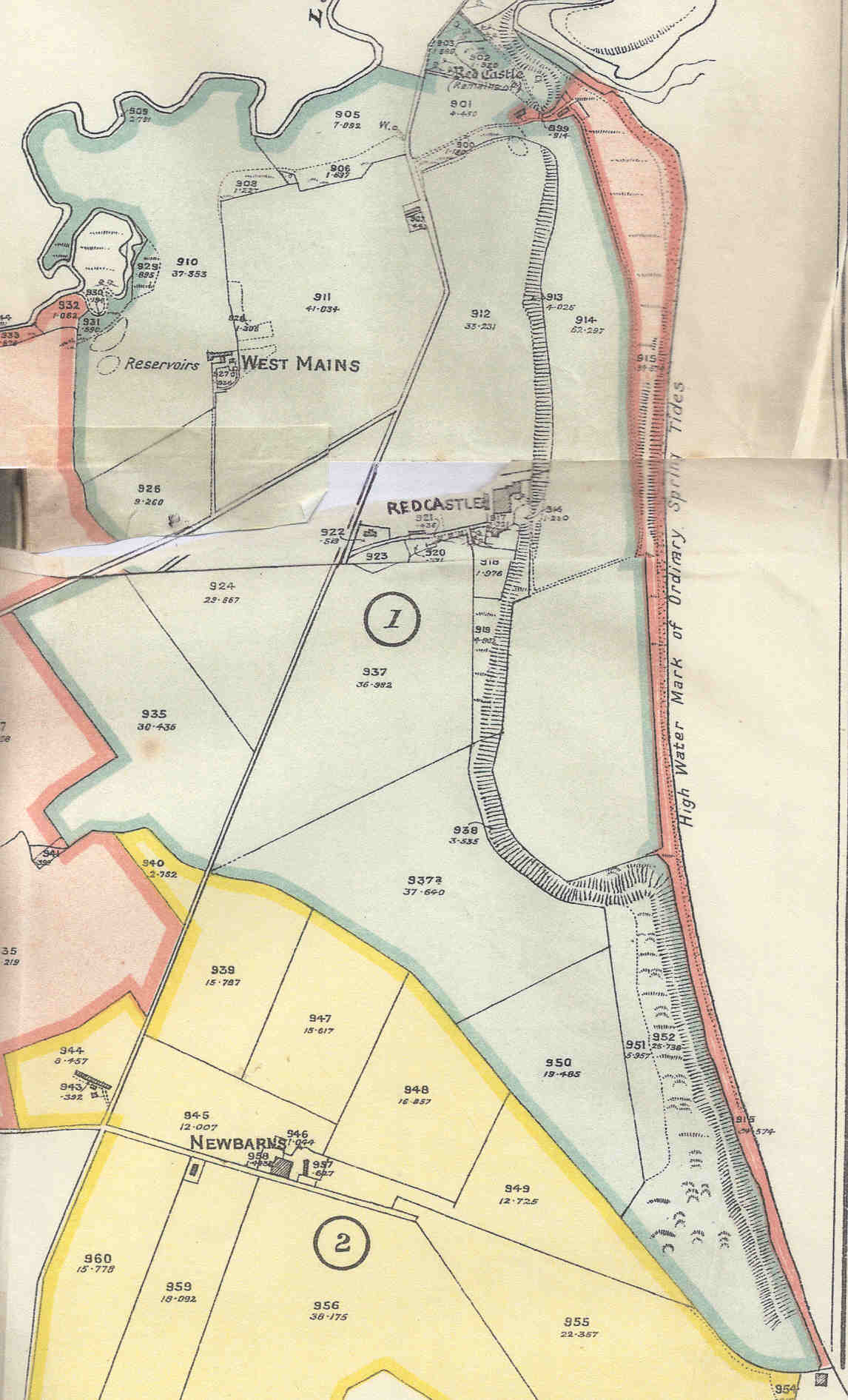 1 | Redcastle [ Map ] | House, steading, West Mains Cottage, 8 further cottages, ruins of Red Castle; excluding the cottages on 899 | 418.576 | 348.937 | 58.385 | 899 (but not the cottages), 900-3, 905-14, 916-24, 926-9, 931, 935, 937, 937A, 938, 950-2 | Patrick Bell | 320 | M 1918 |
